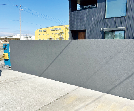 EPS(特殊発泡スチロール)の上から5層の仕上げによって、ショベルカーのフルスイングにも耐える、驚きの強度を誇る塀に仕上がります。
